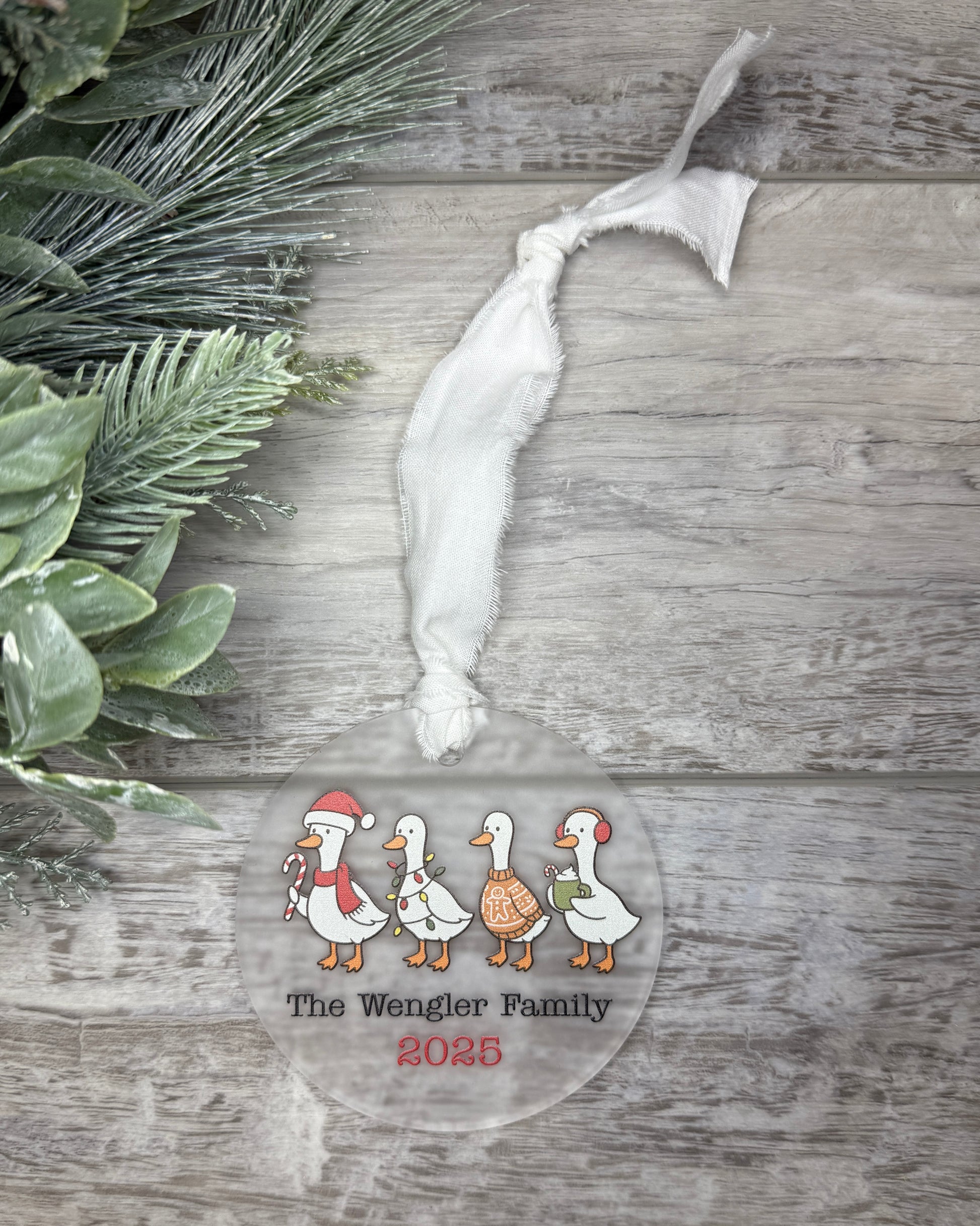 Each ornament is 3-1/2" diameter round crafted from high-quality 1/8" thick frosted acrylic and printed using a long-lasting UV process, so the colors stay vibrant and won’t fade, scratch, or peel over time. Every piece comes ready to hang with a ribbon (ribbon style may vary).
