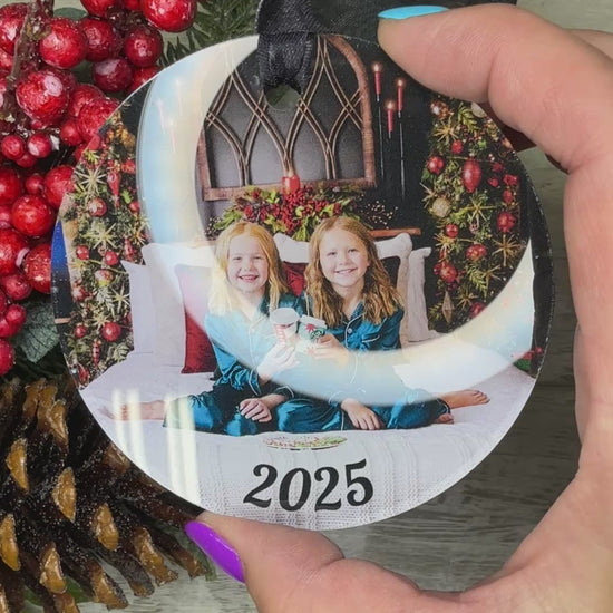 Each ornament is 3-1/2" diameter round crafted from high-quality 1/8" thick clear acrylic and printed using a long-lasting UV process, so the colors stay vibrant and won’t fade, scratch, or peel over time. We will print your photo or design on the back side of the clear acrylic so your design is visible through the acrylic for a glossy finish. Every piece comes ready to hang with a ribbon (ribbon style may vary).