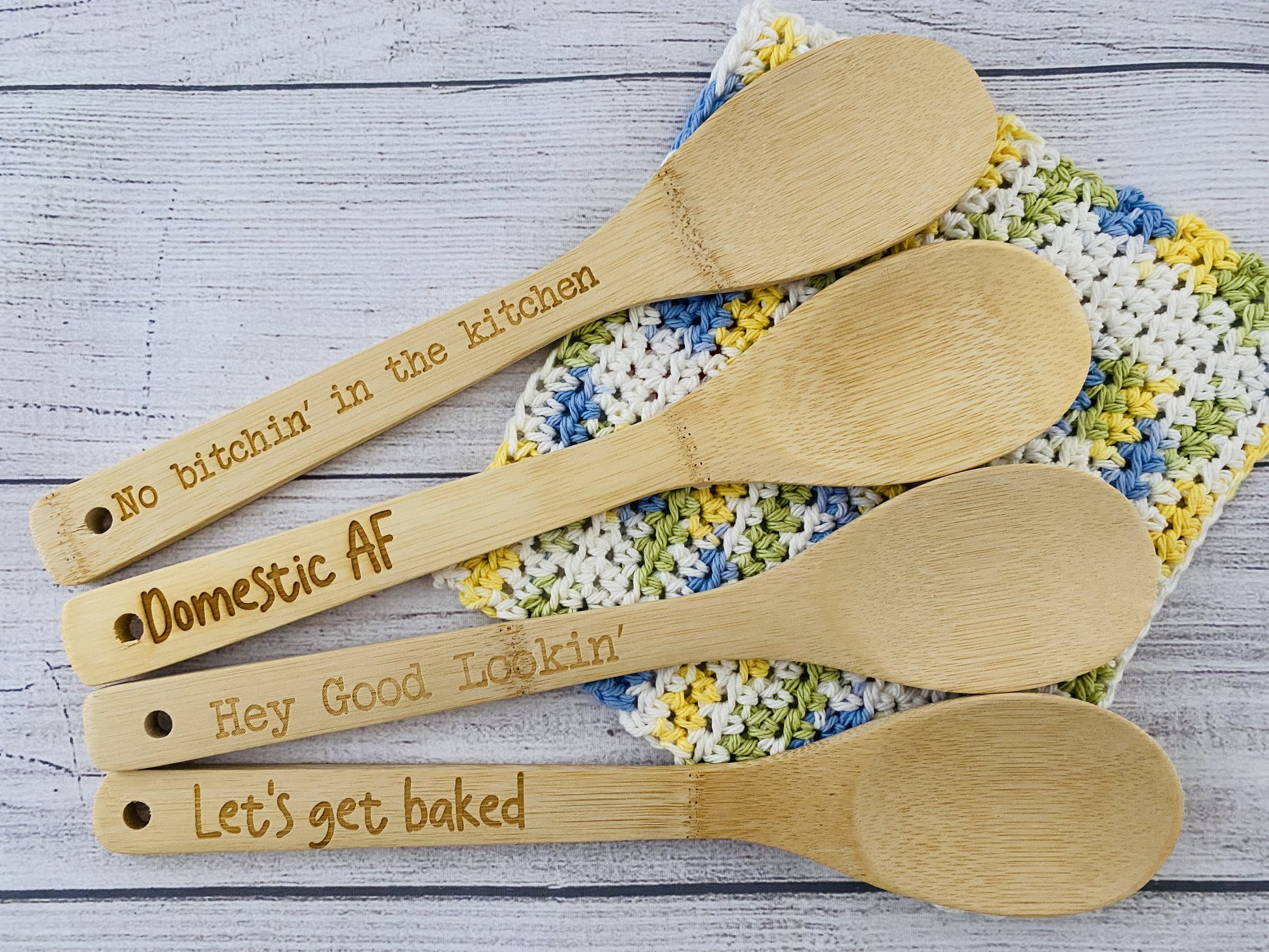 *NOTE* These items are made of natural wood. Exact shape, size, and engraving color will vary. Each piece is unique!